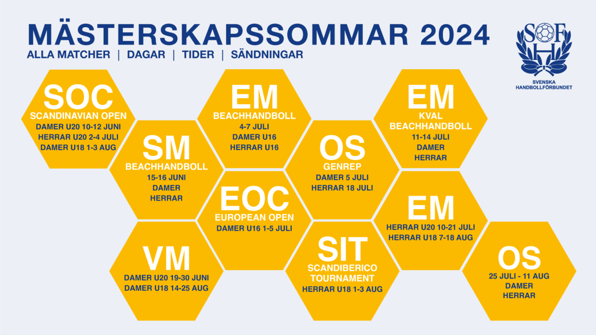 Svensk Handboll står inför en händelserik sommar med våra beach- och handbollslandslag som deltar i internationella mästerskap som OS, VM och EM. På hemmaplan arrangeras matcher och turneringar som ger fansen chans att se våra stjärnor i aktion. | | |