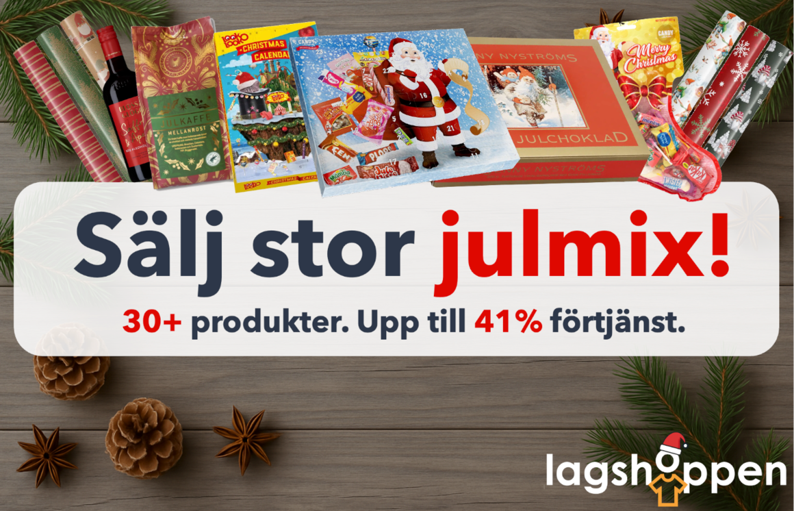 |  | | Vill ni tjäna pengar till laget? | Tillsammans med vår samarbetspartner Lagshoppen kan ni som förening erbjuda säsongsanpassade produkter, som till exempel deras julsortiment med allt från julkalendrar, julpapper och saffran till ljus, julgodis och pepparkakor. Vi är särskilt glada att lyfta fram Lagshoppen som dessutom har högst kundnöjdhet i branschen med 4,8 av 5 baserat på 276 omdömen enligt den oberoende kundomdömessajten Trustpilot. | | |