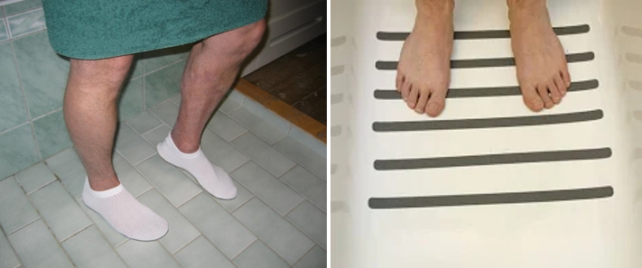Dusch- och badtofflor samt halkskyddstejp