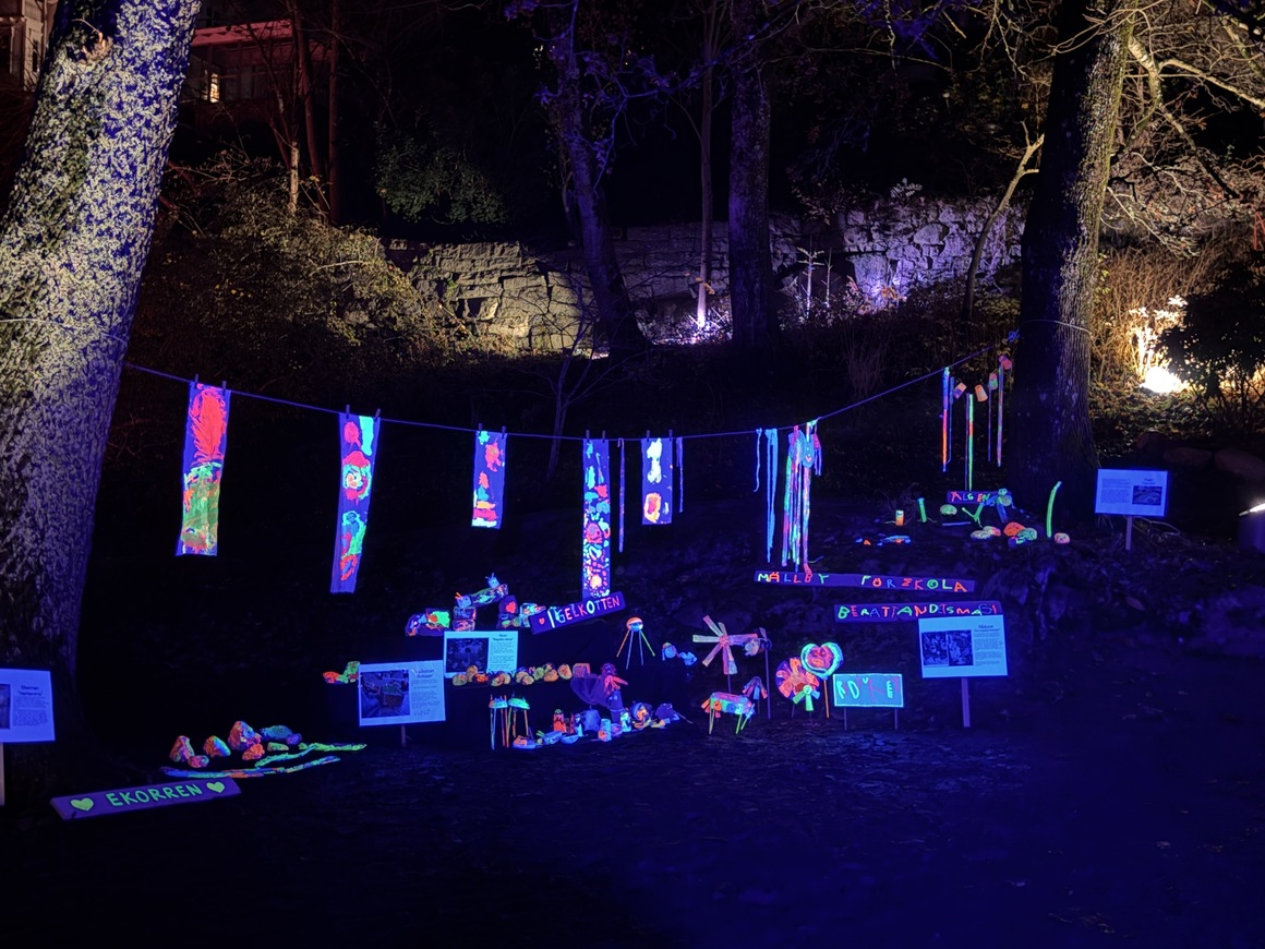 Årets upplaga av Strömstad in Light lockade både stora och små besökare. Några som lyste lite extra var Mällby förskolas konstnärer, vars fluorescerande målningar förvandlade Strömsdalen till en magisk sagovärld. De färgsprakande konstverken var resultatet av höstens temaarbete "Berättandets magi". | | | | |