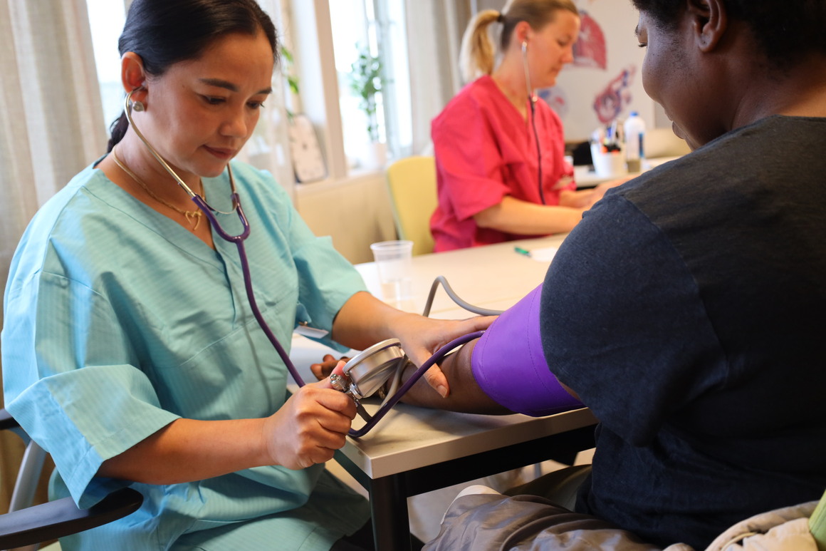 Vuxenutbildningens blivande undersköterskor lockade tidigare i höst rekordmånga besökare när de erbjöd öppen mottagning för elever och personal på Campus Strömstad. Patientundersökningarna innehöll blodtryck, puls, syremättnad i blodet och blodsocker. | | | | |